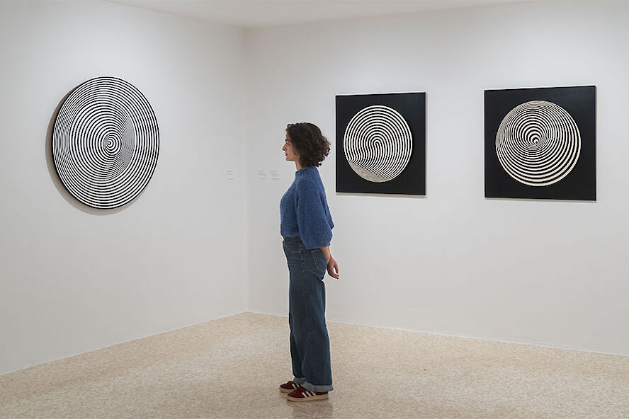 Marina Apollonio è un’artista che da sempre ha utilizzato la geometria come linguaggio per esplorare la percezione e la profondità. È interessante pensare che il cerchio, una delle figure geometriche più semplici e al contempo più potenti, in mano sua diventa un terreno di infinite possibilità. C’è chi racconta che la sua ricerca sia iniziata proprio con l’osservazione della circolarità delle cose quotidiane, come le ruote delle biciclette o i riflessi sull’acqua, che si trasformano in un’esperienza estetica che sfida il pensiero lineare. Un viaggio che porta a pensare a quanto sia complesso, ma al contempo affascinante, un oggetto tanto semplice come il cerchio.